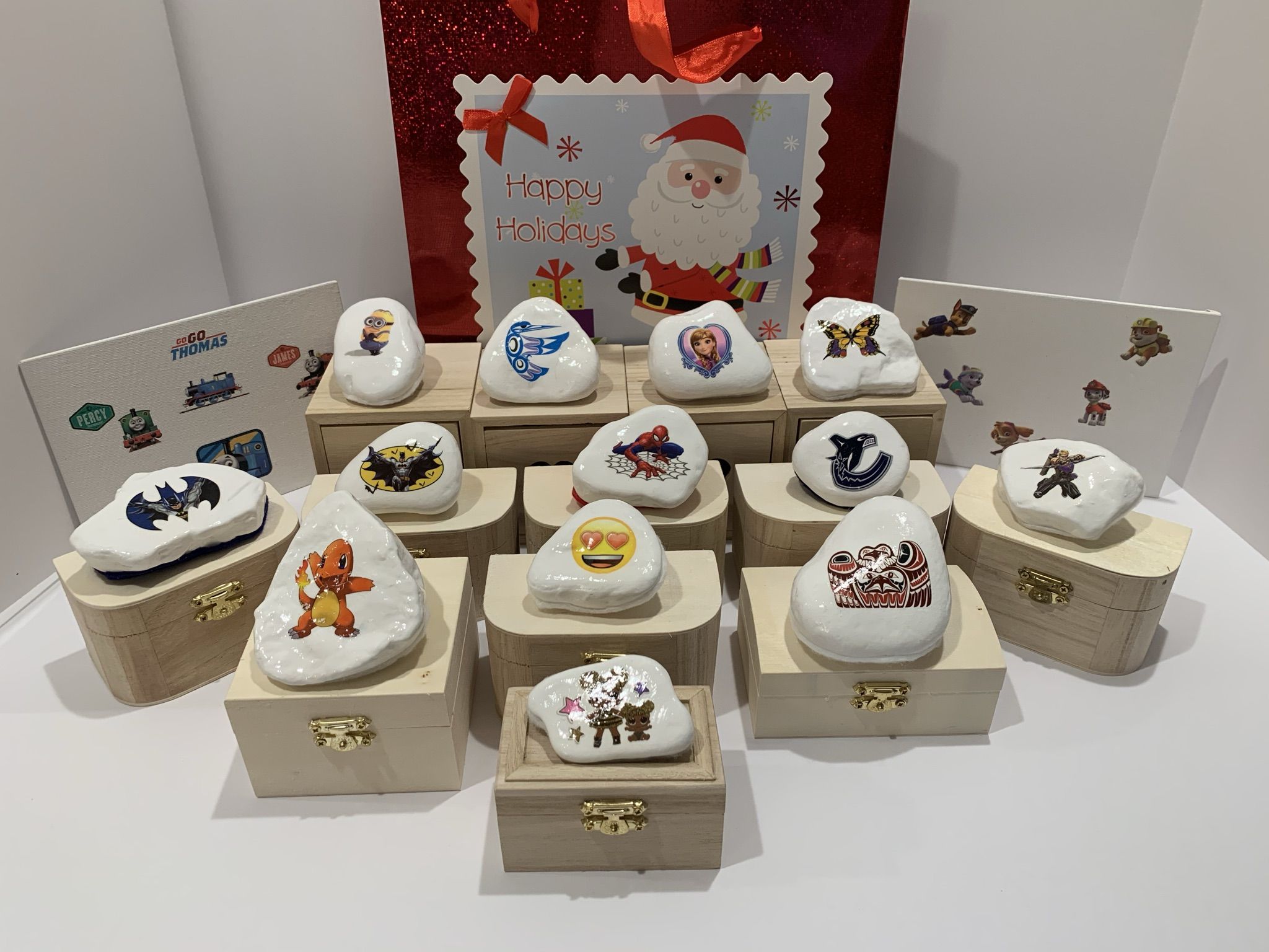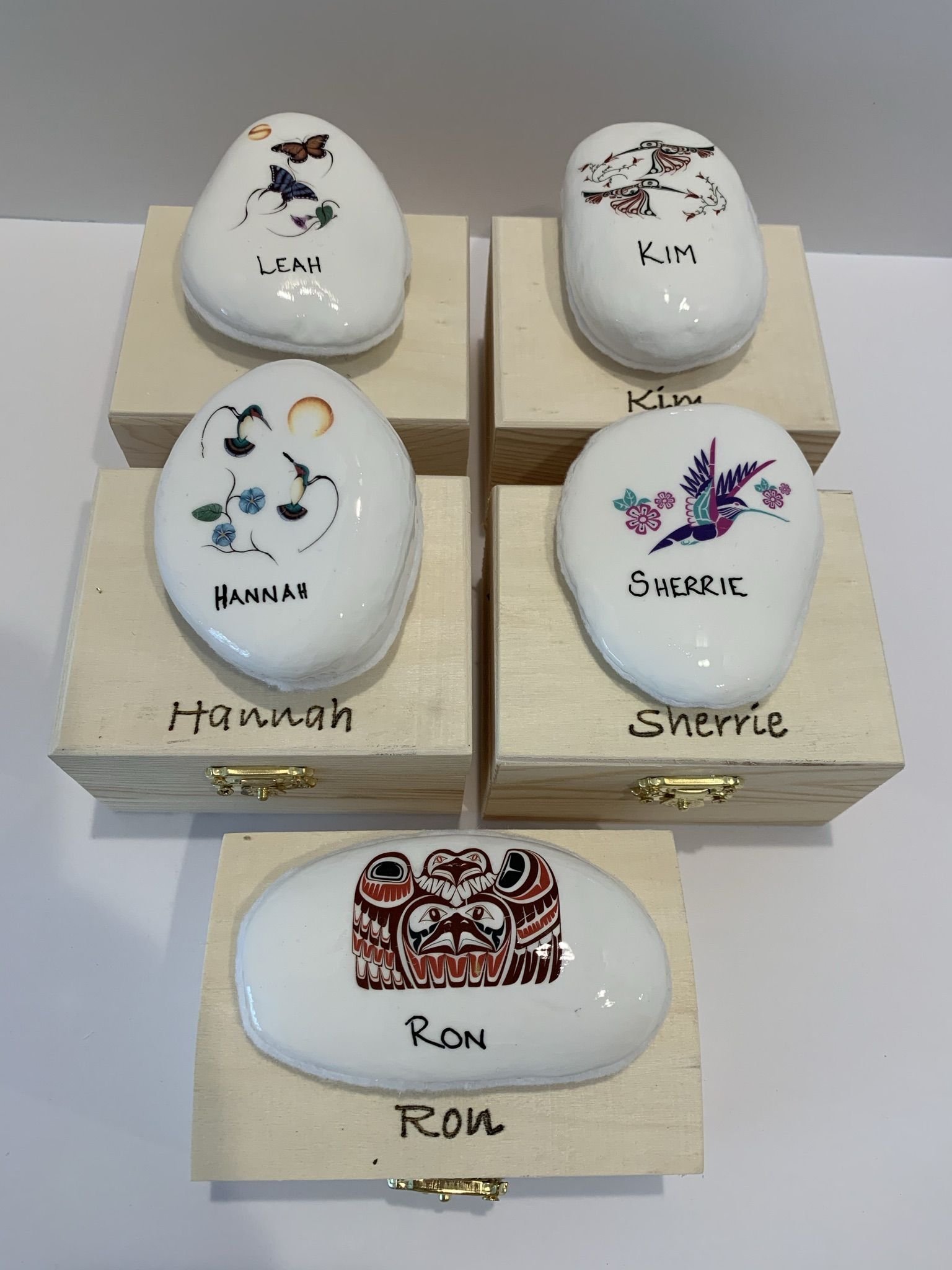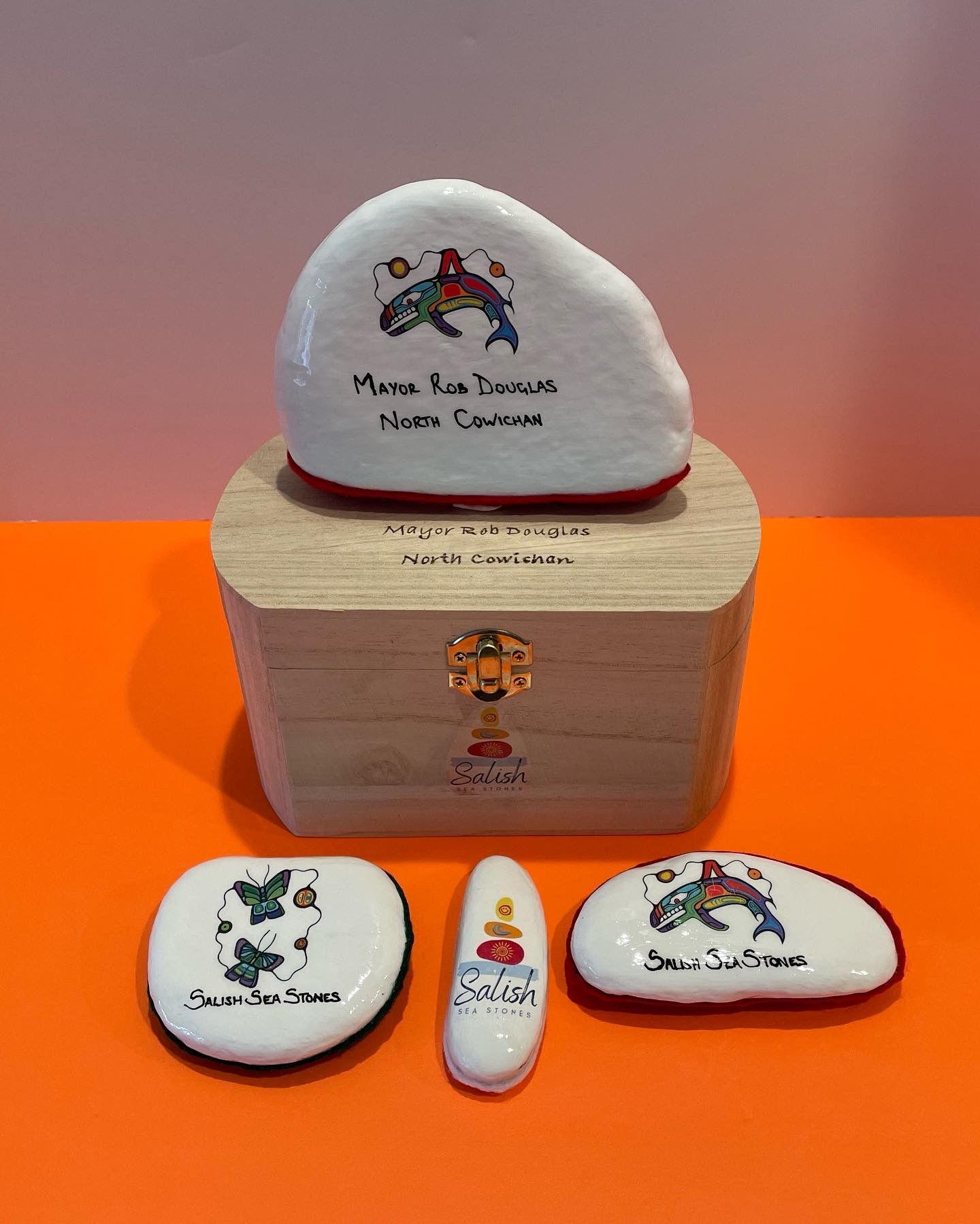 So he started Salish Sea Stones and began to sell his stones in local shops or by commission – with proceeds at each shop going to benefit different children in various First Nations, pediatric units, and transition houses.